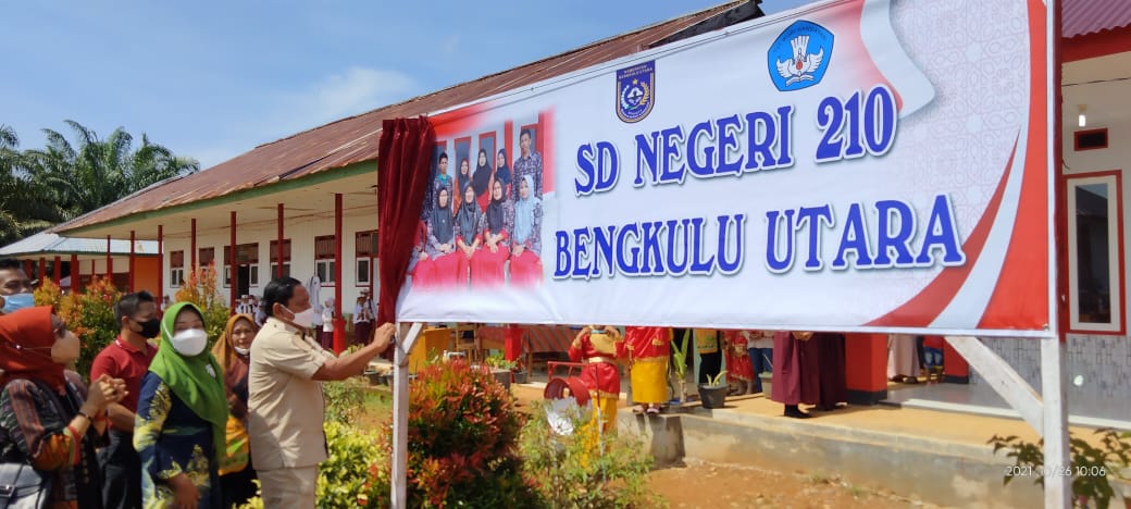 Bengkulu, Siberindo.co – Gedung Sekolah Dasar (SD) Negeri 210 Desa Air Sebayur, Kecamatan Pinang Raya, Kabupaten Bengkulu Utara, secara resmi dibuka, ditandai dengan prosesi pembukaan tirai pada plang SDN 210 BU oleh Bupati Bengkulu Utara Ir H Mian bersama jajarannya, di Desa Air Sebayur, Selasa (26/10/2021).