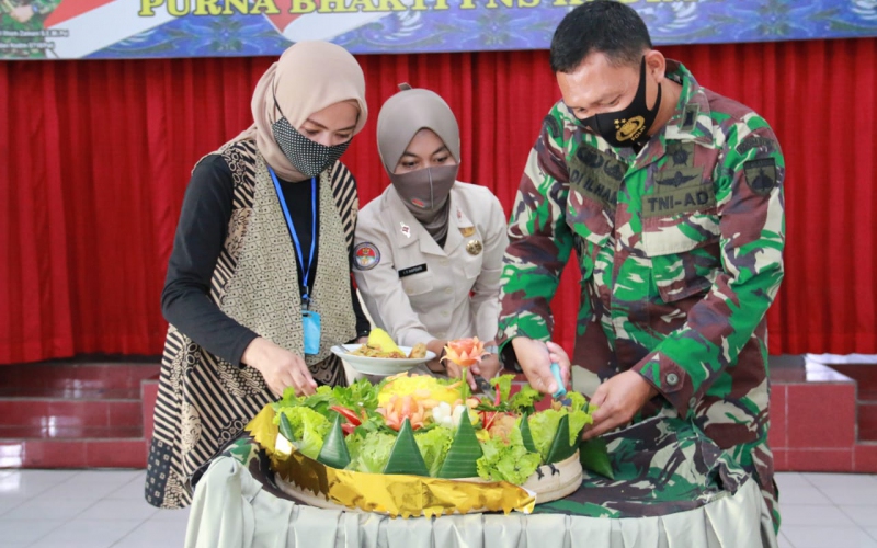 Menyambut hari ulang tahun (Korps Pegawai Republik Indonesia) KORPRI ke-49 tahun 2020, PNS TNI AD Kodim 0718/Pati melaksanakan acara syukuran yang dirangkai dengan acara purna tugas PNS Kodim Pati digelar secara sederhana di aula suluh bakti makodim Pati. Kamis (26/11/2020).
