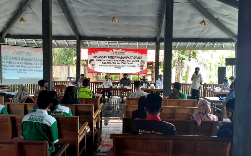 Kegiatan sosialisasi tersebut juga turut dihadiri oleh unsur Forkopimcam Kaligondang, Ketua Panwaslu Kecamatan Kaligondang Nova beserta anggota, perwakilan dari Bela Negara, Linmas, Karang Taruna, Pemuda Ansor dan Kokam Kecamatan Kaligondang.