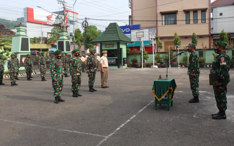 Kasdim mengingatkan kepada seluruh peserta apel, agar selalu menjaga keamanan dan kebersihan lingkungan satuan, baik pengamanan personil maupun materil satuan. Dimasa sekarang ini, pengamanan pribadi maupun keluarga tidak boleh lengah dalam menghadapi pandemi Covid-19.