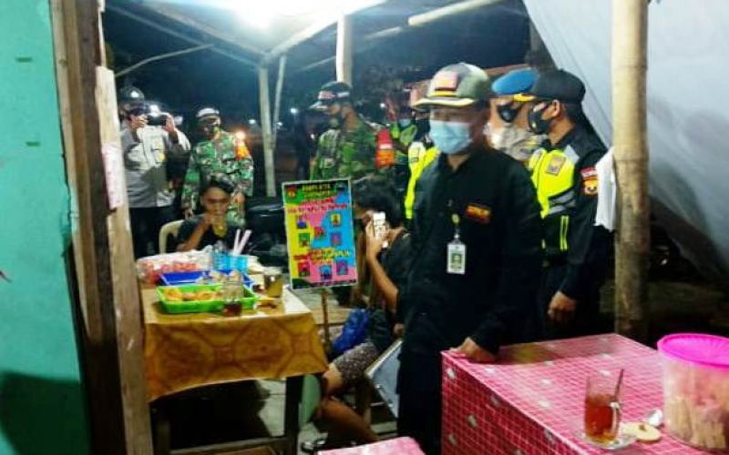Sampaikan himbauan terkait protokol kesehatan pencegahan Pandemi Covid-19 dengan 5M di tengah-tengah warga, Koramil 05/Weru bersinergi dengan anggota Polsek Weru dan trantib Kecamatan Weru melaksanakan kegiatan himbauan bersama pada malam hari di warung makan atau hik di wilayah Kec. Weru