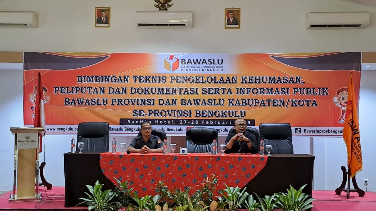 Bengkulu, Siberindo.co – Badan Pengawas Pemilihan Umum (Bawaslu) Provinsi Bengkulu menyelenggarakan Bimbingan Teknis (Bimtek) Pengelolaan Kehumasan, Peliputan dan Dokumentasi serta Informasi Publik di Hotel Santika, 27-28 Februari 2023.