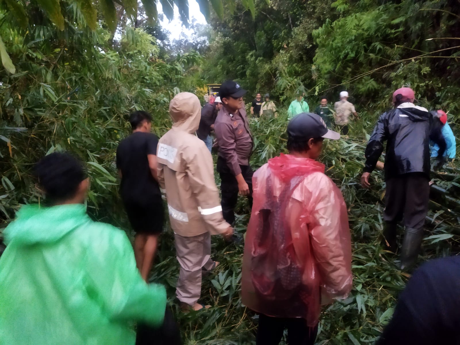 “Personel dibantu Babinsa dan warga memotong pohon tumbang dan membantu evakuasi warga yang terdampak longsor dan pohon tumbang,” jelas Kapolsek.