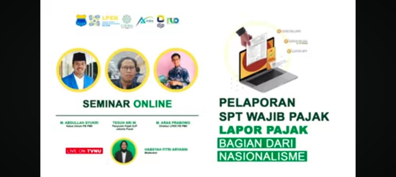 Jakarta – Lembaga Profesi Ekonomi dan Keuangan (LPEK) Pengurus Besar Pergerakan Mahasiswa Islam Indonesia (PB PMII) bekerjasama dengan Program Studi Akuntansi Universitas Nahdlatul Ulama Indonesia (UNUSIA) dan Nasaruddin Umar Office (NUO) berusaha untuk ikut bersama Negara dalam peningkatan kepatuhan Wajib Pajak dengan sosialisasi pelaporan SPT Tahunan Wajib Pajak.