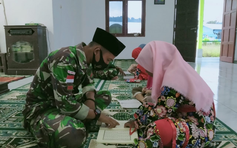 Serma Dieky selaku Danpos Kantuk Asam mengungkapkan, kegiatan mengajarkan mengaji tersebut dipimpin oleh Pratu Boby beserta Pratu Rahmad dengan mengajarkan Iqro sejak dini kepada anak-anak di Masjid Al-Mukhlisin yang barada di Desa Kantuk Asam.