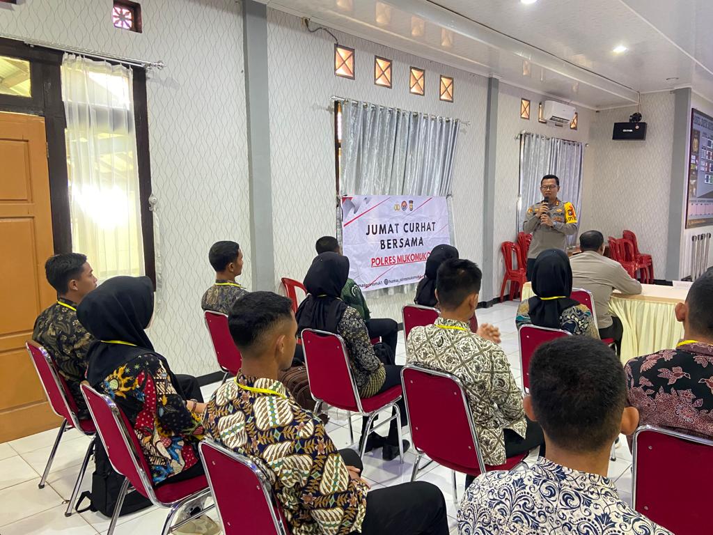Mukomuko – Polres Mukomuko kembali menggelar Jumat Curhat di wilayah hukum Polres Mukomuko, Jumat(28/04/2023).