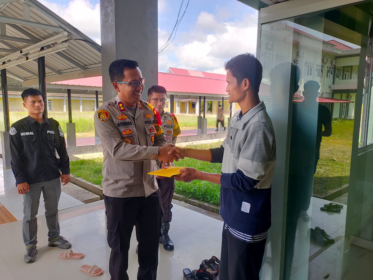 Bertemu dengan keluarga Leni, tidak hanya memberikan bantuan secara moril, Kapolres Mukomuko juga memberikan bantuan secara materil untuk biaya pengobatan Leni.