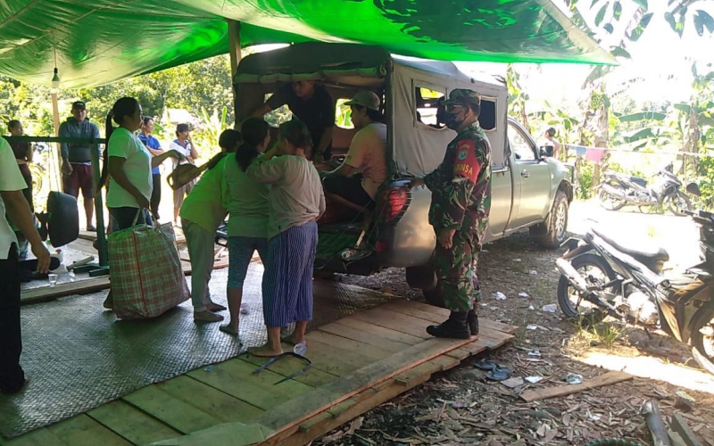 Sertu Darmadi anggota Babinsa 1206-03/Batang lupar membantu mengatarkan zenajah binaannya ke tempat pemakaman umum di Dusun Tembali, Desa Labian, Kecamatan Batang Lupar, Kabupaten Kapuas Hulu. Rabu (26/05/21)