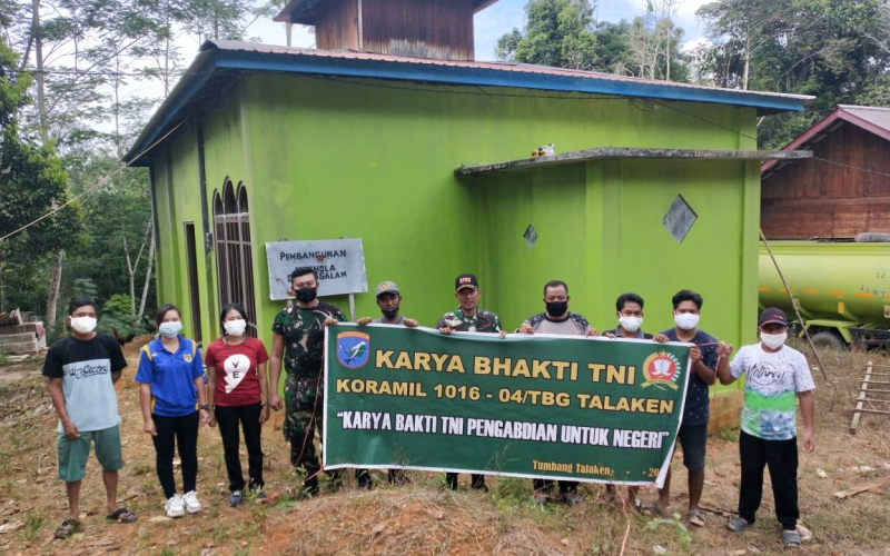 Koramil 1016-04/Tumbang Talaken Kodim 1016/Palangka Raya melaksanakan karya bakti pengecatan Mushola Darussalam di Jalan Negara RT 04 RW 01 Desa Tangki Dahuyan Kecamatan Manuhing Kabupaten Gunung Mas, Kamis 27 Mei 2021.