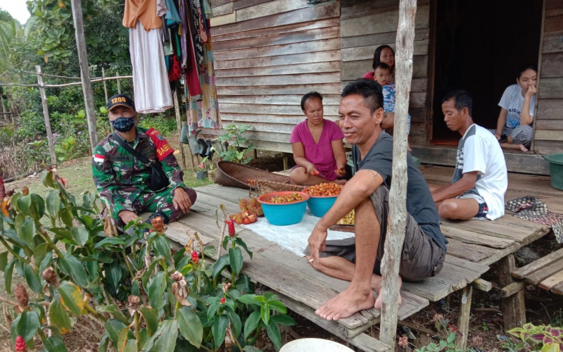 Berlokasi di Kampung Tematu, Desa Sepandan, Kecamatan Batang Lupar Kabupatrn Kapuas Hulylu, Serka Oken Babinsa Koramil 1206-03/Batang Lupar Kodim 1206/Psb, mengunjungi salah satu warga binaannya untuk memberikan bantuan Sembako. Rabu(26/05/21).