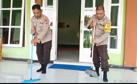 Rejang Lebong – Menyambut Hari Bhayangkara ke-77, personel Polsek Curup Polres Rejang Lebong Polda Bengkulu melaksanakan kegiatan bakti sosial. Bakti sosial ini dalam bentuk bersih-bersih sarana ibadah di Masjid Darussalam Kelurahan Simpang Nangka Kecamatan Selupu Rejang, Kabupaten Rejang Lebong, Kamis (22/6/2023) siang.