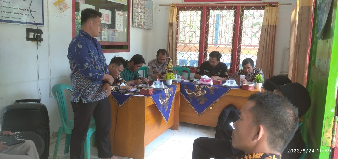 Bhabinkamtibmas Polsek Giri Mulya, Bripka Wisnu Nugroho menghadiri Musyawarah transformasi dana bergulir Masyarakat eks. PNPM M.Pd menjadi BUMDes Bersama di kantor Desa Suka Mulya Kec.Giri Mulya Kab.Bengkulu Utara