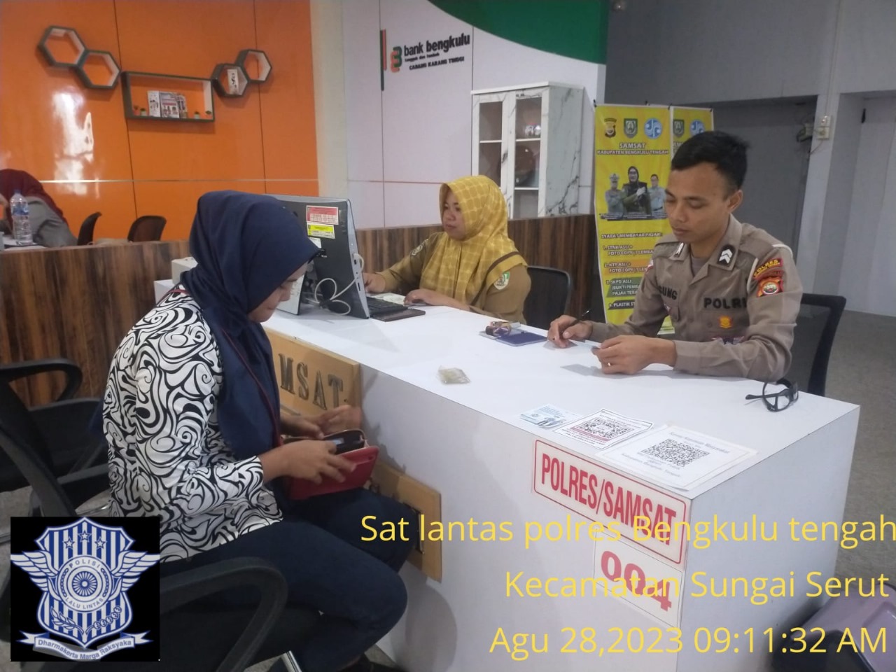 Dalam pelaksanaan pelayanan ini, personel Sat Lantas Polres Bengkulu Tengah Polda Bengkulu, yang terlibat adalah Bripka Rahmat Riadi, S.Sos, dan Briptu Agung. Mereka dengan sigap melayani wajib pajak dan pemilik kendaraan yang datang ke Kantor Samsat Bengkulu Tengah.