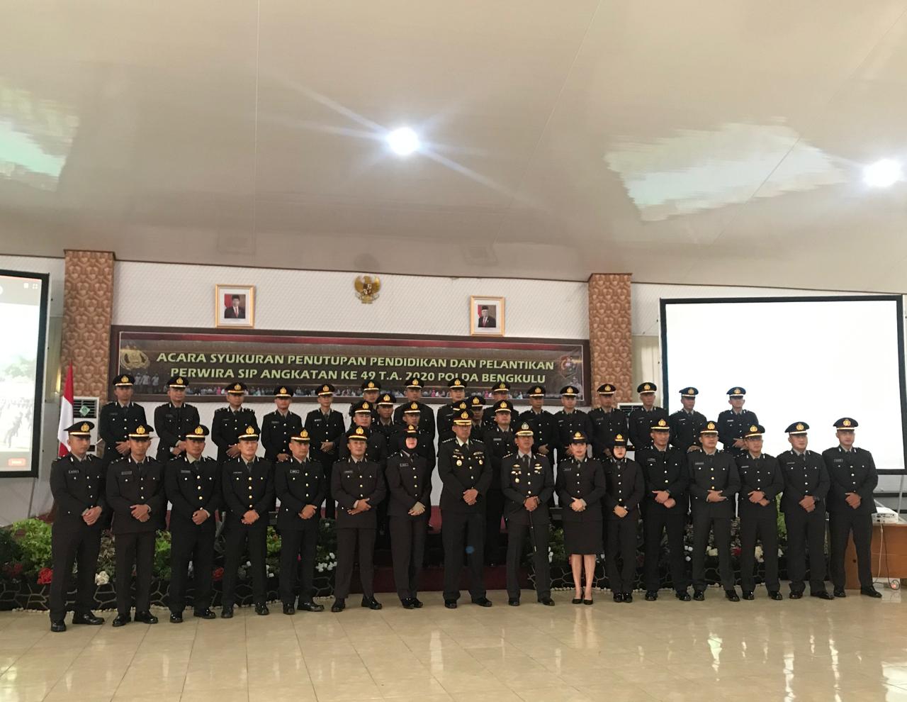 Bengkulu, Siberindo.co – Sebanyak 35 Perwira baru Polda Bengkulu mengikuti Kegiatan Upacara Penutupan Pendidikan Sekolah Pembentukan Perwira Polri Angkatan ke-49 Tahun Ajaran 2020 secara virtual melalui aplikasi Zoom, pada hari ini Senin (28/09/2020) sekitar pukul 08.00 Wib di Gedung Adem Polda Bengkulu.