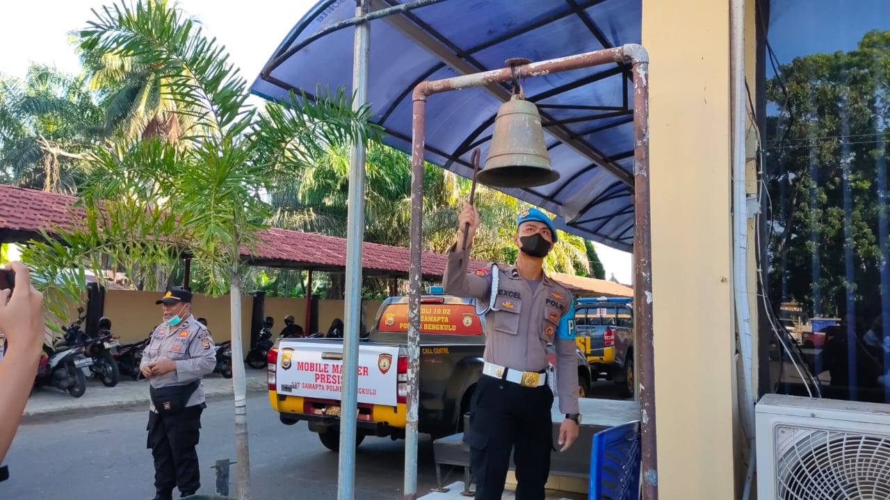 Bengkulu, Siberindo.co – Mendengar tanda berupa lonceng berbunyi berkali-kali menandakan situasi bahaya, seluruh personil Polres Bengkulu Polda Bengkulu segera berlarian mengambil posisi masing-masing yang telah ditentukan guna bersiaga dalam menghadapi segala kemungkinan situasi yang akan terjadi.