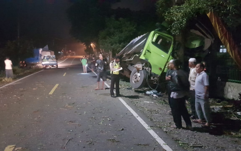 Tabrak Pohon Mahoni, Truk Tronton Box Termo Tewaskan Satu Orang Penumpang