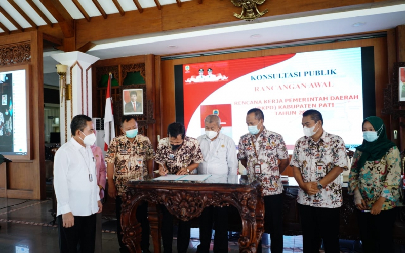 Pemerintah Kabupaten Pati menyelenggarakan konsultasi publik di Pendopo Kabupaten Pati. Acara ini diselenggarakan untuk memenuhi tahapan dalam penyusunan Rencana Kerja Pemerintah Daerah (RKPD) Kabupaten Pati tahun 2022. Kamis (28/1).