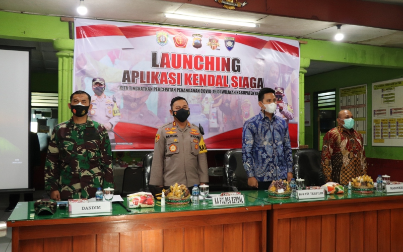 Dalam rangka mengimplementasikan perintah Presiden Republik Indonesia untuk menekan penyebaran kasus Covid19, Polres Kendal Polda Jateng membuat satu program inovasi pelayanan publik berbasis aplikasi online guna mendukung penerapan protokol kesehatan sebagai sarana menuju Kendal yang aman dan sehat. Aplikasi yang dinamakan “Kendal Siaga” ini di launching langsung oleh Kapolres Kendal AKBP Raphael Sandhy Cahya Priambodo, S.I.K. di Balai Desa Karangayu Kecamatan Cepiring Kabupaten Kendal, Kamis (28/1/2020).