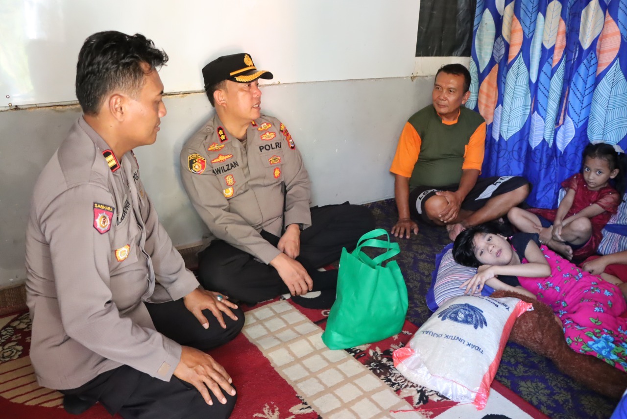 “Kita hari ini mengunjungi anak penderita stunting putra dari Bapak Ali (55). Kita juga berikan tali asih untuk membantu meringankan beban keluarga,” terang Kapolres.