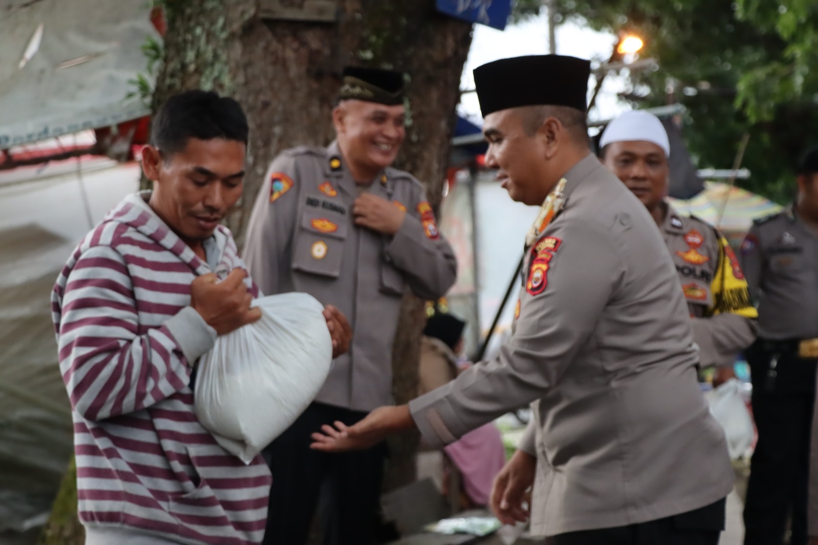 “Ada 100 paket Sembako dan 100 paket Takjil yang kita bagikan kepada masyarakat. Untuk paket Sembako isinya beras dan minyak goreng, sedangkan isi Takjil adalah minuman dan makanan ringan,” kata Kapolres.