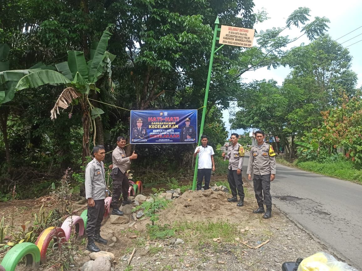 Kapolres Bengkulu Utara melalui Kapolsek Kerkap menambahkan,” Bhabinkamtibmas Polsek Kerkap Polres Bengkulu Utara memasang spanduk himbauan di beberapa titik yang dianggap rawan terjadinya kecelakaan “.