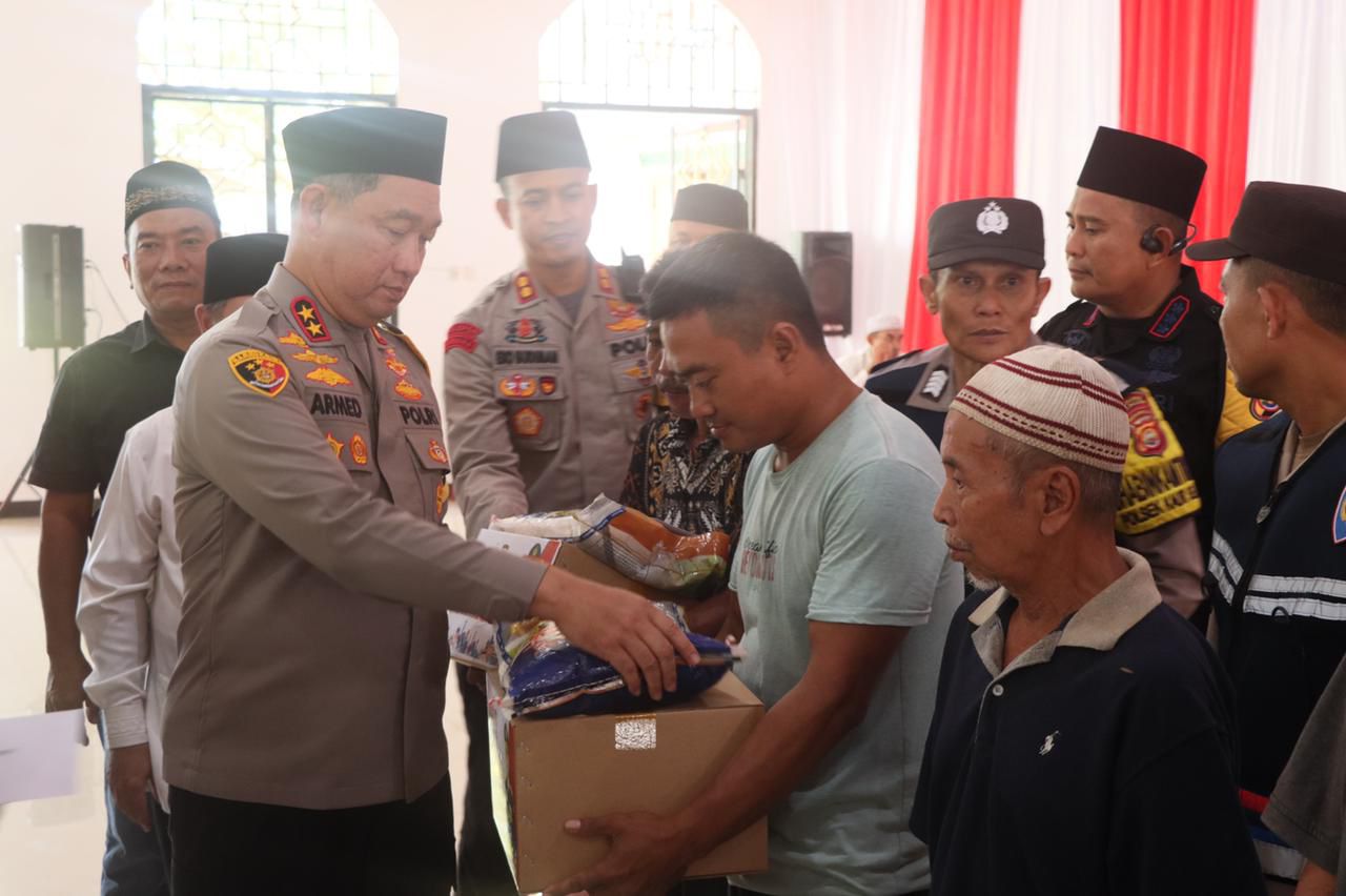 Kaur – Usai pelaksanaan sholat Jumat , (29/03/2024) Kapolda Bengkulu Irjen Pol Drs. H. Armed Wijaya, M.H. kembali menggelar bulan bakti Ramadhan berupa pembagian bantuan sosial kepada masyarakat. Kali ini giliran warga Kabupaten Kaur yang menerima manfaat setelah sebelumnya Kapolda Bengkulu juga melaksanakan pembagian bantuan sosial di kota Bengkulu, Kabupaten Lebong, Rejang Lebong, Kepahiang, Seluma dan Bengkulu Selatan.