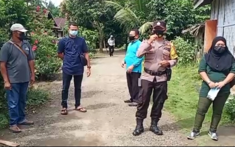Personel Bhabinkamtibmas Polsek Tebing Tinggi Bripka Elpin Malau SH didampingi Kepala Desa Bahsumbu, Hartoyo, Sekdes, Kadus IV dan jajaran perangkat desa lainnya melakukan penyemprotan disinfektan di rumah – rumah warga di Dusun IV, Desa Bah Sumbu, Kec. Tebing Tinggi, Kab. Serdang Bedagai.