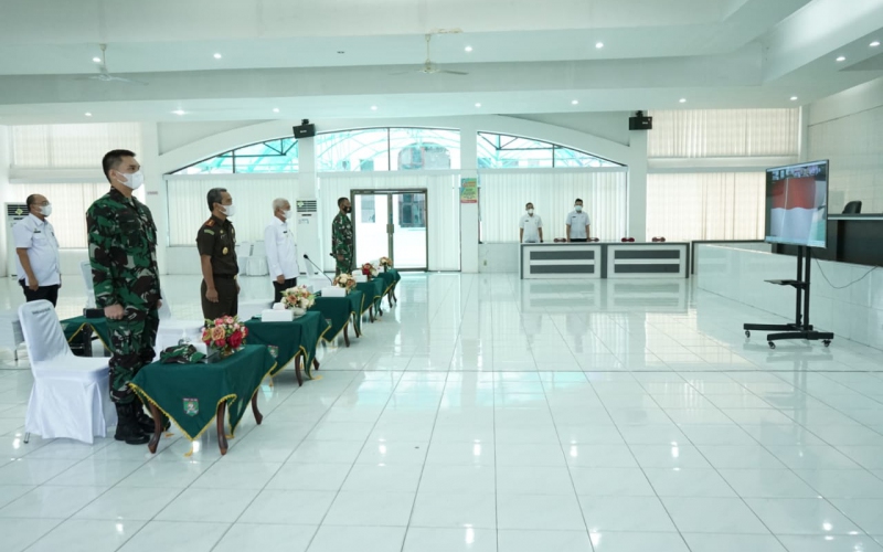 Bupati bersama unsur Forkopimda Kabupaten Asahan mengikuti Rapat Koordinasi (Rakor) dengan Presiden Republik Indonesia, Ir. H. Joko Widodo bersama seluruh Kepala Daerah se- Indonesia secara virtual yang dipusatkan di Aula Melati Kantor Bupati Asahan, Rabu (28/04/2021).