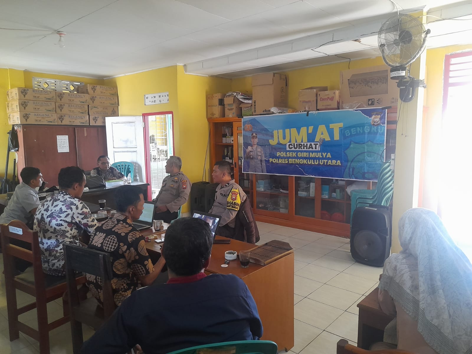 Kapolres Bengkulu Utara AKBP Andy Pramudya W Melalui Kapolsek Giri Mulya Iptu Freddy Simaremare, S.H mengatakan kegiatan Jumat Curhat Polsek Giri Mulya ini rutin dilaksanakan setiap Jumat nya.