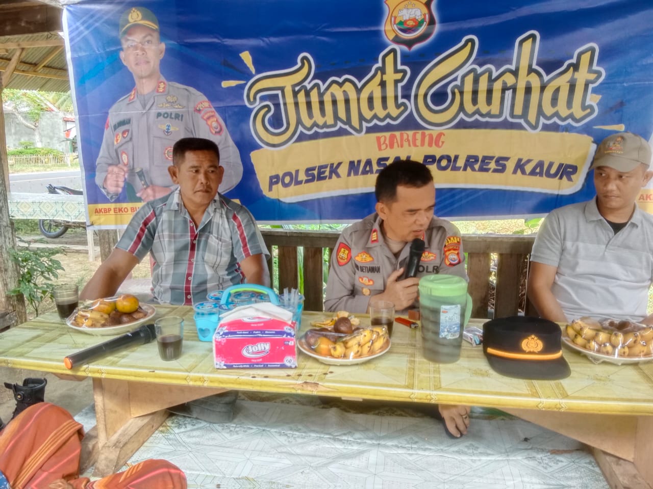Kaur – Polsek Nasal, Polres Kaur Polda Bengkulu menggelar Jumat Curhat, Jumat (28/4/2023). Jumat Curhat merupakan kegiatan rutin Polri yang dilaksanakan setiap hari Jumat disemua Polda, Polres dan Polsek jajaran.