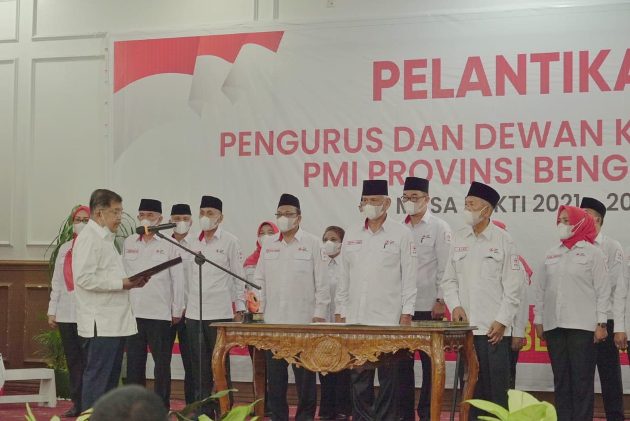 Bengkulu, Siberindo.co – Pengurus dan Dewan Kehormatan Palang Merah Indonesia (PMI) Provinsi Bengkulu masa bhakti 2021-2026 secara resmi dilantik oleh Ketua Umum PMI Pusat H M Jusuf Kalla di Balai Raya Semarak Bengkulu, Jumat (28/5/2021).