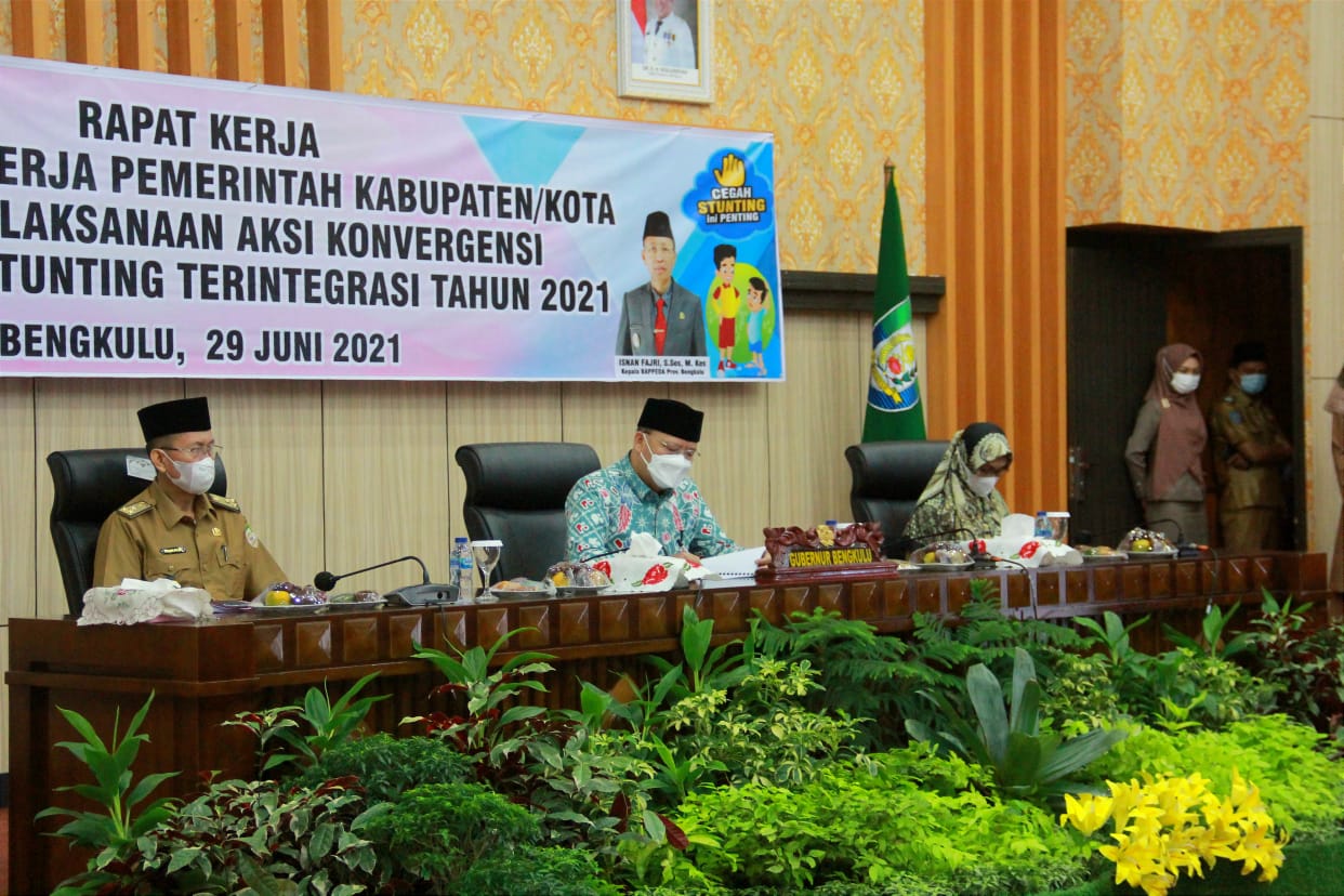 Hal ini disampaikan Gubernur Bengkulu Rohidin Mersyah saat Raker Penilaian Kinerja Kab/Kota Dalam Pelaksanaan Konvergensi Intervensi Penurunan Stunting Teritegritas Tahun 2021 Provinsi Bengkulu, Selasa (29/6/2021).