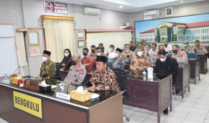 Kapolda Bengkulu Irjen Pol. Drs. Agung Wicaksono, M.Si ikut menyaksikan kegiatan tersebut secara virtual di ruang rupatama Polda Bengkulu. Turut hadir bersama Kapolda Bengkulu, tokoh agama dan tokoh masyarakat provinsi Bengkulu.