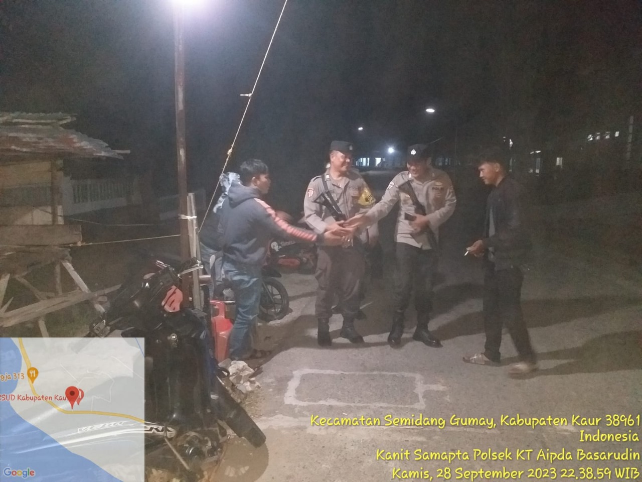Kaur – Polsek Kaur Tengah Polres Kaur Polda Bengkulu, melaksanakan Patroli Diologis Antisipasi Premanisme dan 3C serta Pengamanan Obyek Vital di Wilkum Polsek Kaur Tengah, Kamis (28/09/2023) sekira pukul 22.10 WIB.