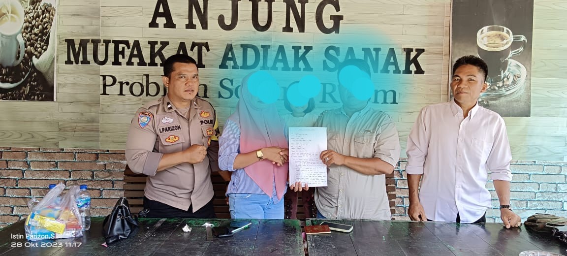 Bengkulu Selatan – Bhabinkamtibmas Polsek Kota Manna Polres Bengkulu Selatan Polda Bengkulu Aipda Istin Parizon, S.H., melaksanakan Problem Solving/ musyawarah perdamaian tentang pengaduan masyarakat terkait dengan dugaan perselingkuhan suami pelapor desa Batu Kuning Kecamatan Pasar Manna kabupaten Bengkulu Selatan, Sabtu (28/10/2023).