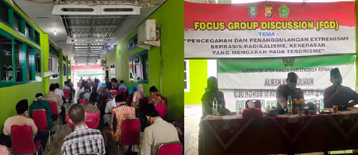 Bengkulu, Siberindo.co – Dalam rangka pencegahan paham radikalisme dan terorisme, Rabu 27 Januari 2021, POLRES Bengkulu mengadakan Focus Group Discussion (FGD) bersama semua Kepala Kantor Urusan Agama (KUA) dan Penyuluh di lingkungan Kementerian Agama (Kemenag) Kota Bengkulu.