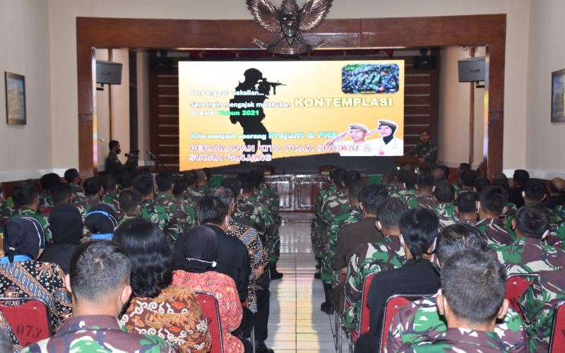 Dalam pengarahannya, Danrem menyampaikan ucapan syukur karena masih diberikan kesehatan, sehingga kita masih bisa melaksanakan tugas dengan baik, memasuki awal tahun 2021 ini kita harus lebih baik dari tahun sebelumnya.