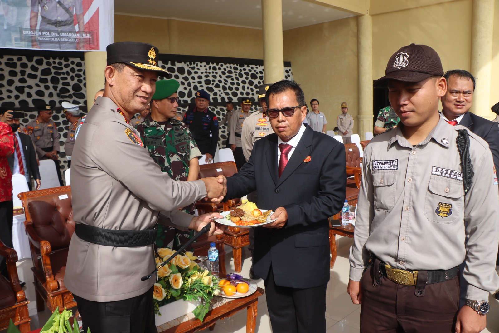 Membacakan amanat dari Kapolri, Kapolda Bengkulu menyampaikan selamat ulang tahun kepada seluruh personil satpam dimanapun bertugas. Ia berharap satpam dapat semakin profesional dalam mengemban fungsi kepolisian terbatas dan semakin optimal dalam melaksanakan pemeliharaan keamanan dan ketertiban masyarkat secara swakarsa.