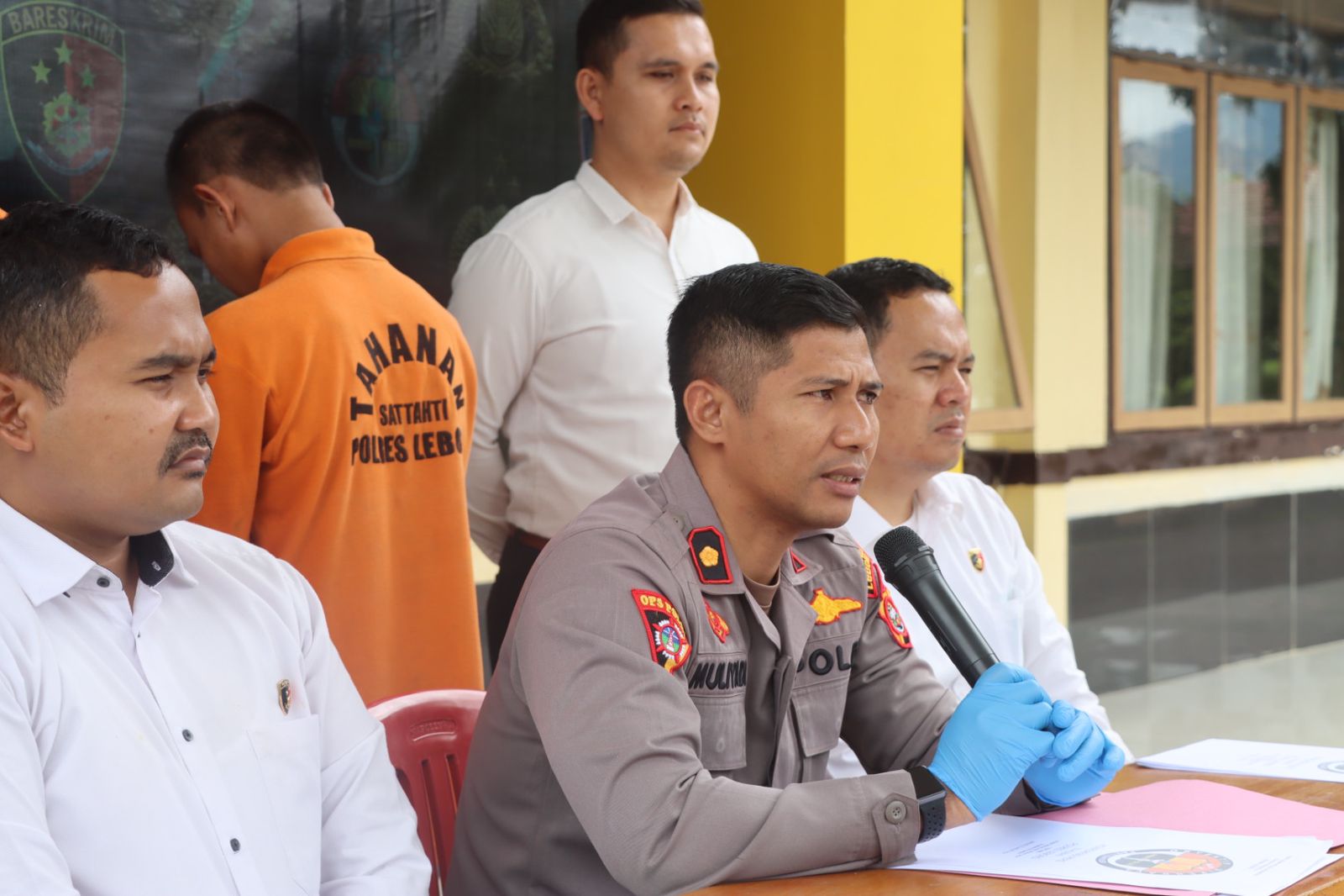 Kapolres Lebong Polda Bengkulu AKBP Awilzan melalui Wakapolres Lebong Kompol Muliyadi, didampingi Kasat Reskrim Iptu Riski Dwi Cahyo, S.Tr.K., S.I.K., saat press release di Mapolres Lebong, Senin (29/1/2024) mengatakan, tersangka melakukan aksinya terhadap korban pada Selasa (10/10/2023) lalu.
