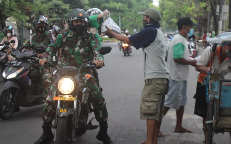 “Hari ini kita kembali membagikan takjil untuk pengguna jalan serta teman-teman pekerja harian yang hingga sore menjelang waktu berbuka puasa masih bekerja. Hanya membantu untuk menyegerakan berbuka puasa dengan nasi dan lauk seadanya,”Ujar Dandim.