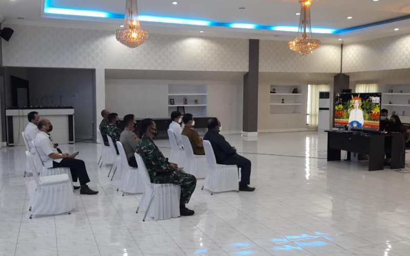 Kasdim 1310/Bitung, Mayor INF Hardi Gue, Mengikuti acara rapat kordinasi presiden RI bersama kepala kepala Daerah dan Forkopimda melalui aplikasi  Zoom Meeting, bertempat di lantai 4 kantor walikota Bitung, Kamis (29/4/2021).