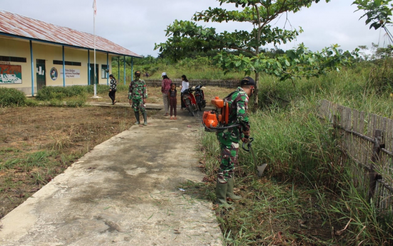 “Disamping memberikan bantuan tenaga pengajar, kami juga mengajak masyarakat agar peduli akan kebersihan lingkungan Sekolah, Dengan harapan Sekolah menjadi bersih dan tertata rapi,” kata Dansatgas.