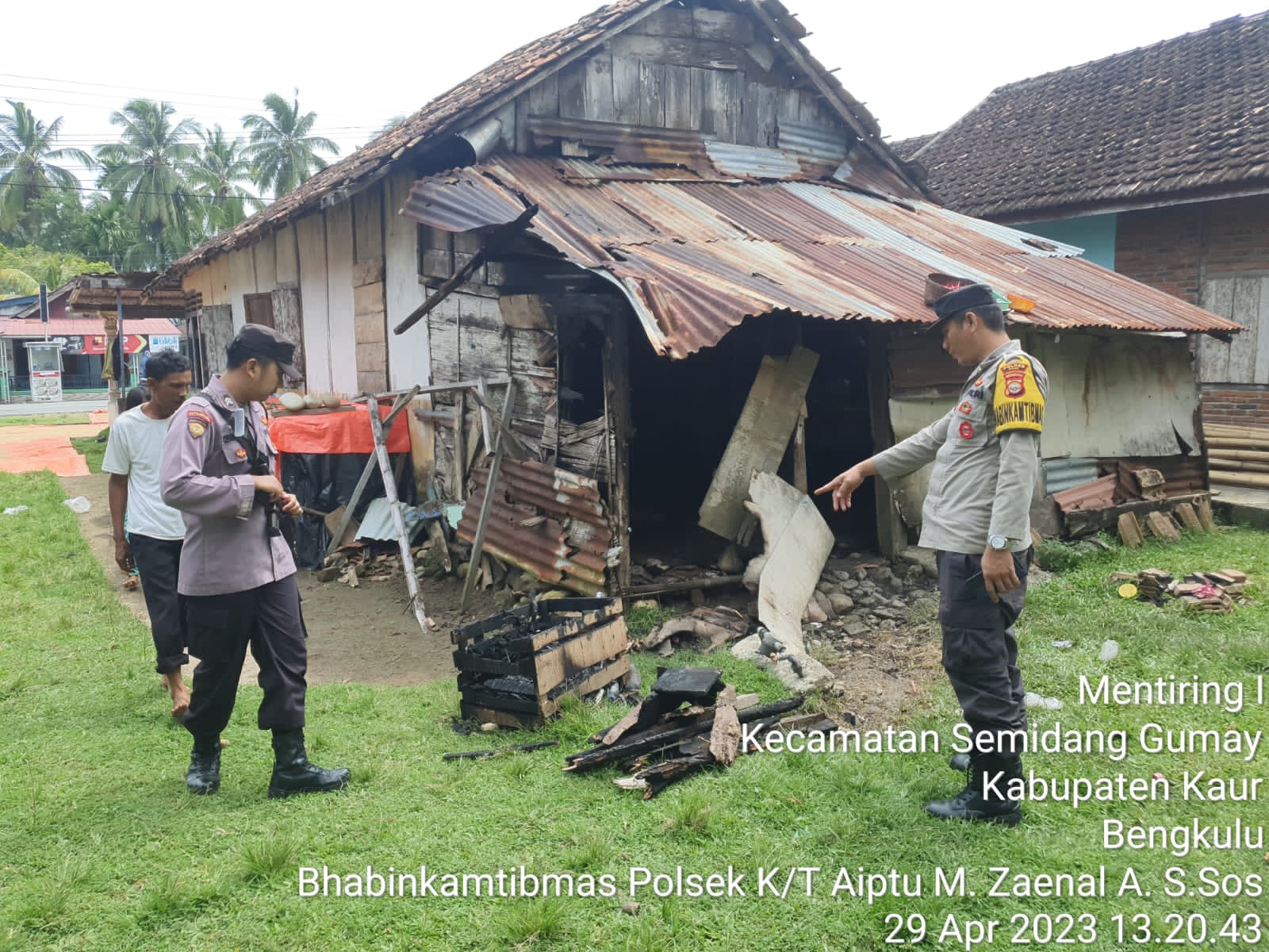 Kaur – Personel Polsek Kaur Tengah Polres Kaur Polda Bengkulu pada Sabtu (29/4/2023) pagi, melaksanakan pengecekan TKP kebakaran dapur rumah warga di Desa Mentiring Kecamatan Semidang Gumay Kabupaten Kaur.