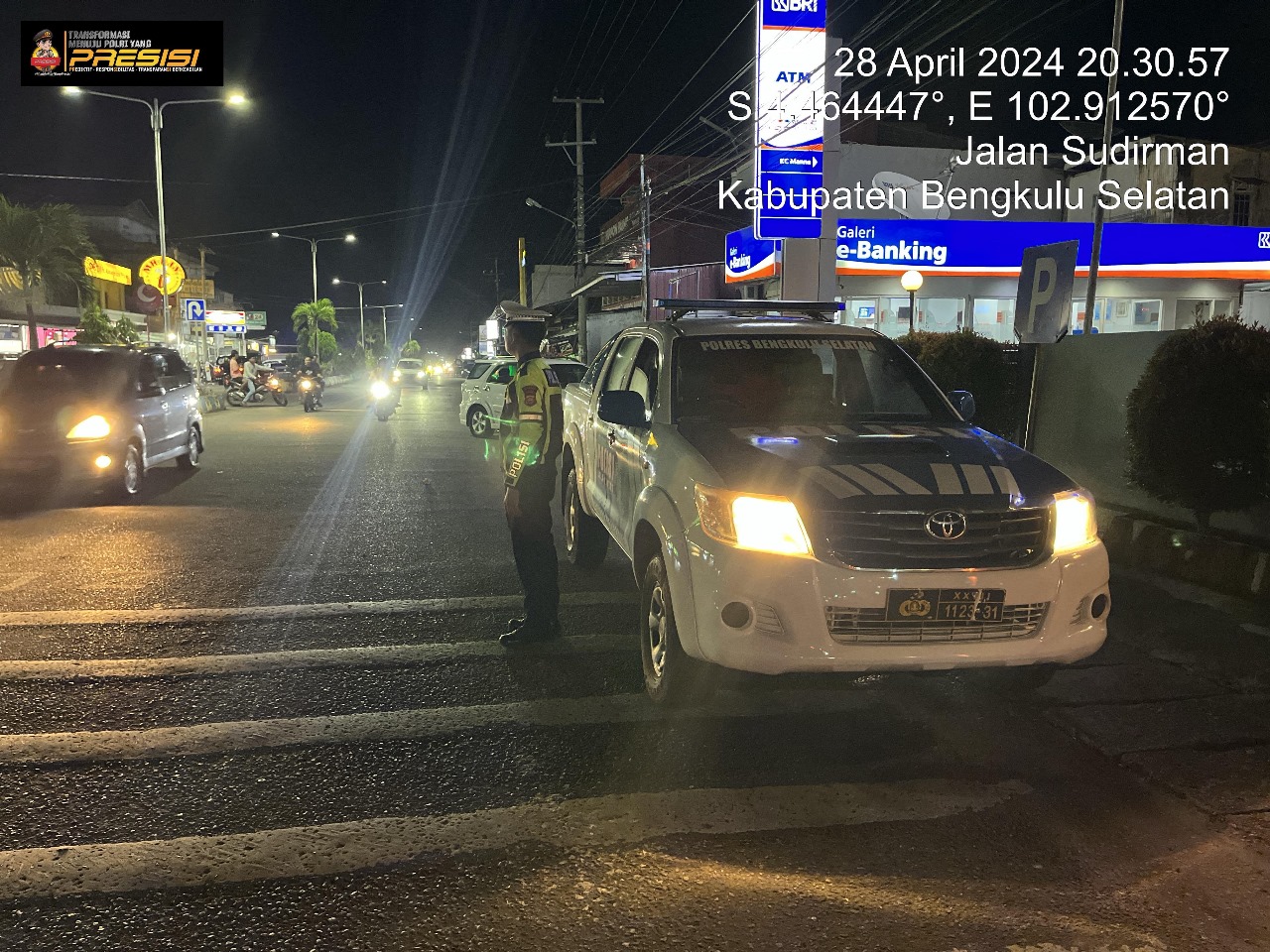 Bengkulu Selatan – Patroli dilaksanakan pukul 19.00 Wib s/d oleh Kanit Laka AIPDA Sutiono SH dan personel Sat Lantas Briptu Rama serta Briptu Eduar selaku Banit Turjawali, melaksanakan Patroli Bluelight di wilayah hukum Seputaran Kota Manna Bengkulu Selatan, pada Senin (29/04/24) malam.