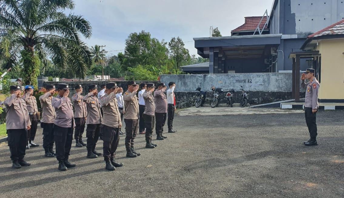 Bengkulu Utara – Untuk melatih kekompakan dan disiplin personil Polsek Giri Mulya Polres Bengkulu Utara Polda Bengkulu lakukan latihan rutin perdaspol baris berbaris di halaman Mako Polsek Giri Mulya, Selasa (30/05/2023).