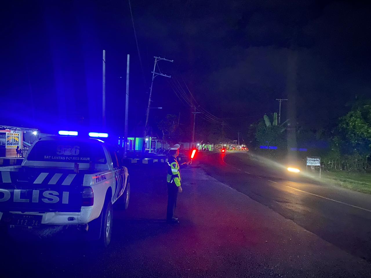 Kaur – Personel Satlantas Polres Kaur Polda Bengkulu, melaksanakan Patroli Blue Light di jalan raya Lapangan Merdeka Kota Bintuhan Kabupaten Kaur, Kamis (29/06/2023) malam.