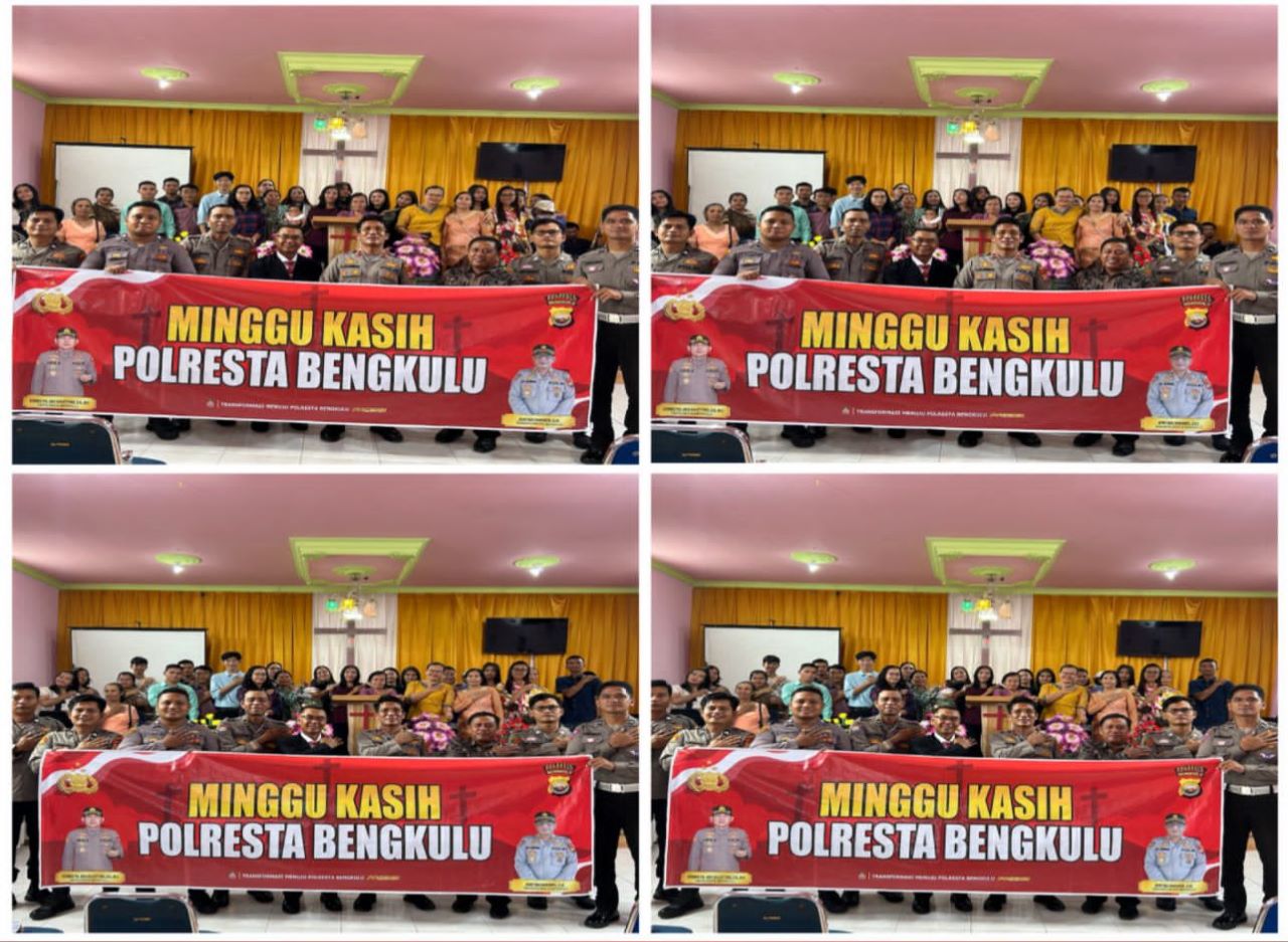Kali ini Minggu Kasih dilaksanakan oleh Personel Regu 3 Nasrani Polresta Bengkulu di Gereja GSJA Hebron jalan Bhakti Husada Kota Bengkulu, Minggu (30/07/2023).