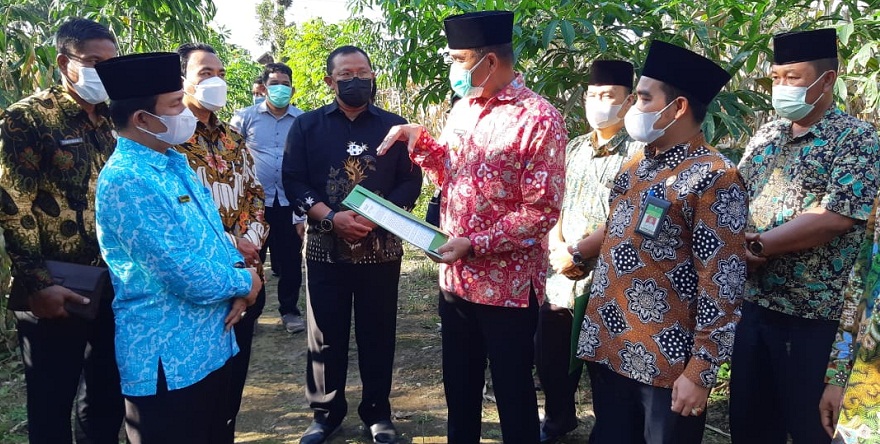 Surat Keputusan (SK) Nomor :180.355.VI tahun 2021 tentang penetapan hibah tanah telah diserahkan oleh Asisten 1 Sekretariat Daerah Pemda RL Pranoto Majid S.H M.Si mewakili Bupati kepada Kakanwil Kemenag Dr H Zahdi Taher M.HI ketika meninjau lahan bersama-Direktur Pelayanan Haji Dalam Negeri H.Saiful Mujab, MA dan Kasubdit Asrama Haji Direktorat Jenderal Penyelenggaraan Haji Dan Umrah, Haryanto, Kamis (26/82021).