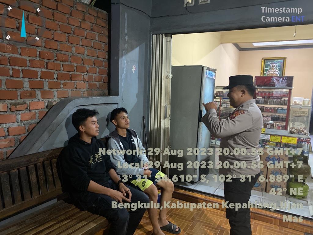 Kepahiang – Dalam rangka pemeliharaan Kamtibmas dan wujudkan kehadiran Polri ditengah masyarakat, Personel Polsek Ujan Mas Polres Kepahiang Polda Bengkulu, melaksanakan patroli dan menyambangi masyarakat di wilayah hukum Polsek Ujan Mas, Selasa (29/08/2023) malam.