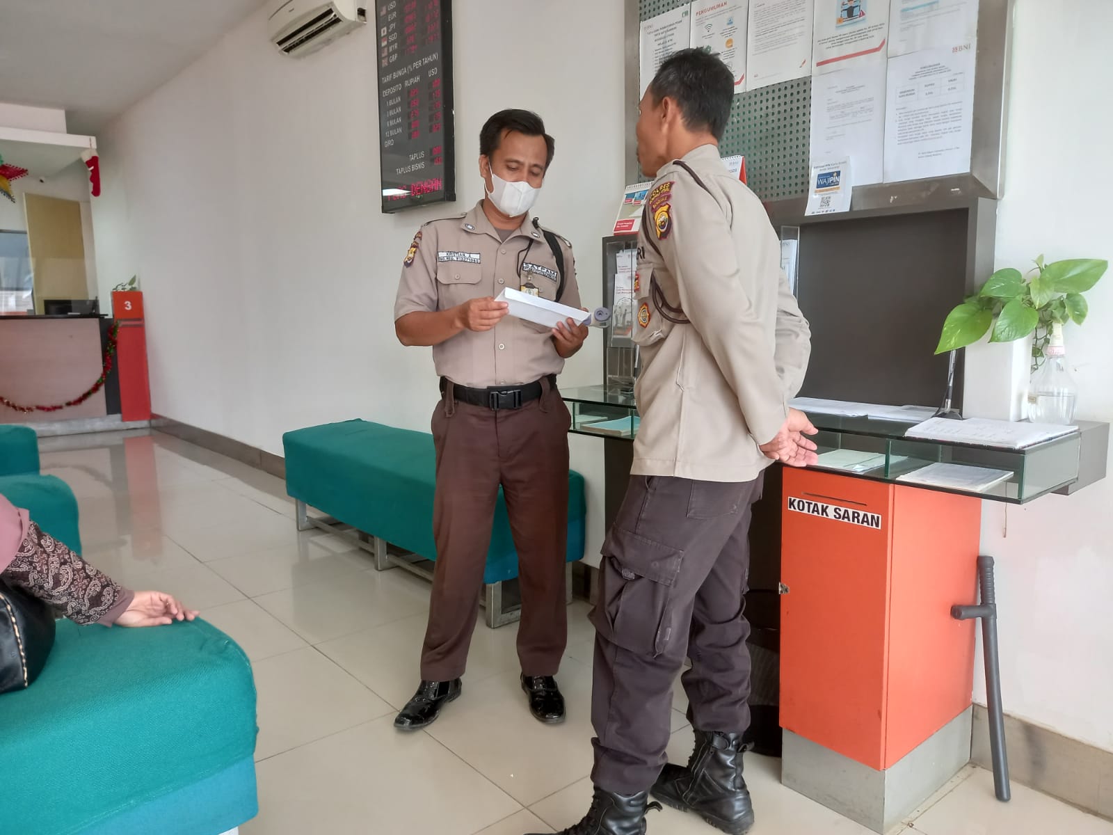 Aiptu Rohadi melakukan sambang ke Petugas Satpam yang sedang tugas jaga siang, dengan berdialog/komunikasi dengan baik serta sampaikan pesan kamtibmas untuk meningkatkan kewaspadaan terhadap Obyek Pengamanannya supaya tetap eksis aman dan kondusif, serta selalu memperhatikan Kedisiplinan sebagai seorang anggota Satpam baik itu Sikap maupun Tampang Perorangan.